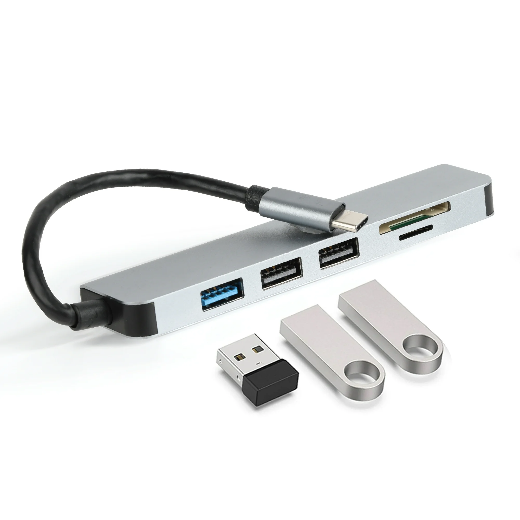 The Vivitar Multi-Port USB Hub is a 6-in-1 adapter combining an SD and microSD card reader with three USB ports and a 4K HDMI port. Connect multiple devices through a single USB-C cable for a convenient, clutter-free setup. Easily mirror or extend your display to a TV, monitor, or projector—great for presentations or travel. USB ports include one high-speed USB 3.0 (5Gbps), ideal for portable storage or webcams, and two USB 2.0 ports for keyboards, mice, and other accessories. The compact, lightweight hub features durable aluminum construction, making it perfect for travel or everyday use. Compatible with PC, Mac, and Chromebook devices..